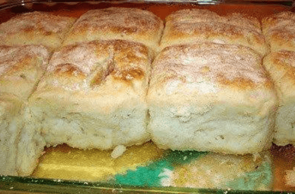 Mix bisquick, sour cream and 7 up. Dough will be very soft – don’t worry Knead and fold dough until coated with your baking mix. Pat dough out and cut biscuits using a round biscuit / cookie cutter. Melt butter in bottom of cookie sheet pan or 9×13 casserole dish. Place biscuits on top of melted butter and bake for 12-15 minutes or until brown at 425 degrees