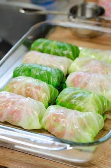 This is your basic recipe for stuffed cabbage that always brings me compliments. I bake this recipe in the oven rather than cooking it stove top. I line my pan with the larger cabbage leaves. I also cover the cabbage rolls wtih additional leaves. This way the actual cabbage rolls stay moist and don’t get burned. I do parboil my cabbage, cutting a few leaves off at a time as they cook. I do add 1/2 to 3/4 cup tomato juice to the meat. This is something my Polish mother always did. I do make a different sauce. After all the work of making homemade stuffed cabbage rolls, I find it hard to pour tomato soup on top. For one pound of meat, I mix an 8oz. can of tomato sauce, 1 Tablespoon brown sugar, 1 Tablespoon lemon juice and 1 teaspoon worcestershire sauce. I mix well and pour over cabbage rolls. Sometimes I double the sauce if I want a lot extra. I often serve these with noodles, so it is nice to have plenty of sauce to pour on the noodles.