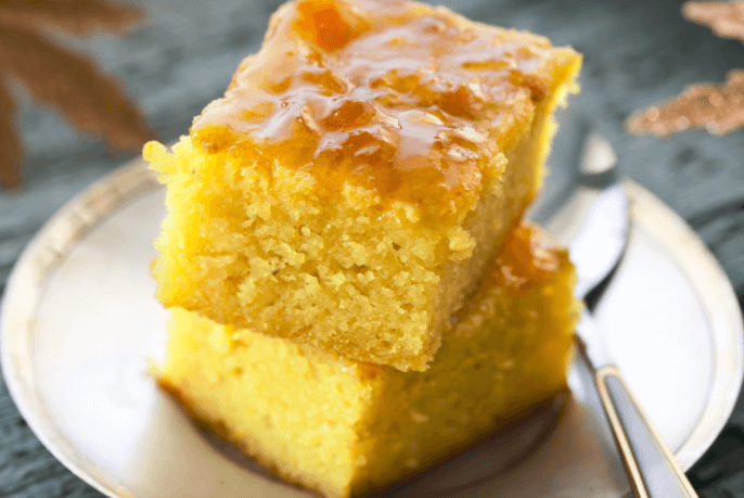 While cake bakes, make the glaze: In a small saucepan, heat the apricot jam and Grand Marnier (or water) over medium heat for 2-3 minutes, stirring frequently. Mixture should become more liquidy. Brush mixture onto top of cake. Serve, and enjoy!