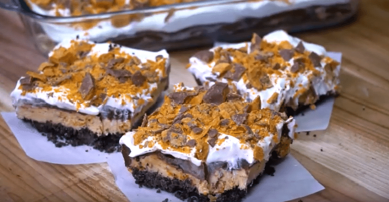 Spread remaining Cool Whip on top. Crush remaining Butterfingers and sprinkle on top. Refrigerate until ready to serve.