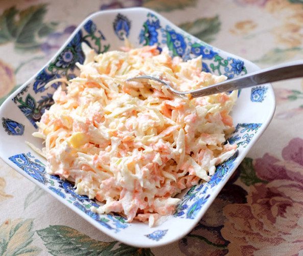 Add in shredded cole slaw mix and fold over with spatula until completely coated. Cover and refrigerate 2 hours, or overnight.