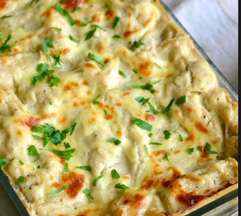 SPREAD half the remaining cream cheese mixture onto bottom of 13×9-inch baking dish; cover with 3 noodles and 1/3 of the chicken mixture. Repeat layers of noodles and chicken mixture twice. Top with remaining noodles, cream cheese mixture and mozzarella; cover.