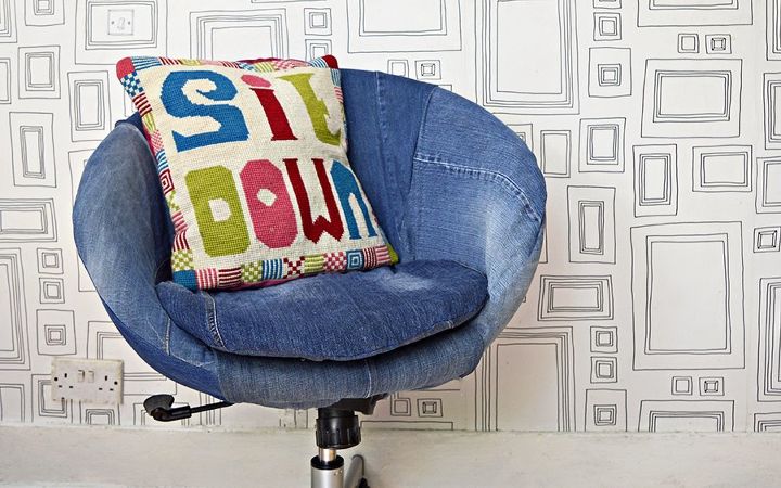 My office chair was in a need of a revamp, but I didn’t want to spend any money on it so I reupholstered it in my old jeans. This was a lot easier to do than you may think and here I show you how I did it. I love my new denim office chair and it looks great next to the denim magazine rack I’d made previously. click here to see it.