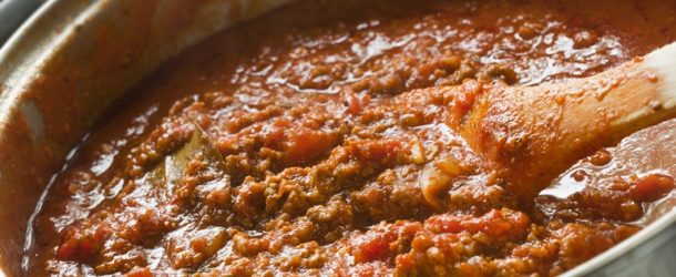 Add the white wine and let it bubble up and reduce for 1 minute. Add crushed tomatoes, tomato paste, and marinara sauce (store bought or homemade). Stir everything together, then add oregano, thyme, sugar, salt, bay leaves, and red pepper flakes. Stir, add cooked meat and stir to combine. Cover, and allow to simmer for 1 hour, stirring occasionally. Add a little water if needed.