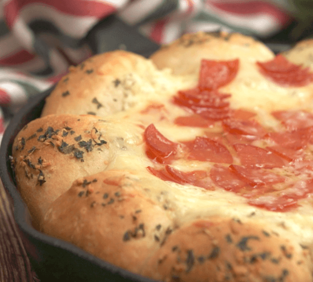 Rolls of doughy garlic bread and a cheesy-as-can-be pizza dip all baked up in one skillet? There’s just nothing bad about that situation. This is the kind of food mash-up that ends up being better than the sum of its parts… When we serve this at parties, it’s pretty much the first thing to go.