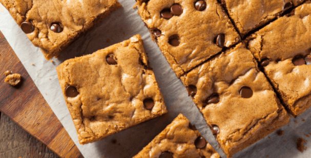 So, I decided to put together the opposite: cookie brownies! These are cookie flavored dough shaped and baked in a brownie pan to give it that consistency. We both really loved the result of this chewy cookie brownie that tastes just like a cookie but has the consistency and looks of a brownie.
