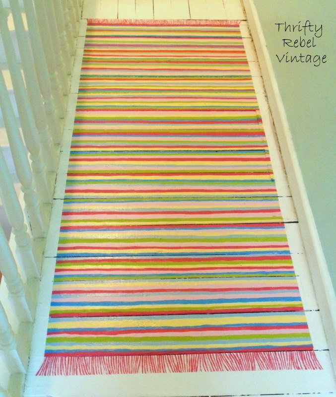 When I finished painting my upstairs hallway floor I really wanted to try painting a faux rag rug, and I’m so happy that I actually went ahead and did it.