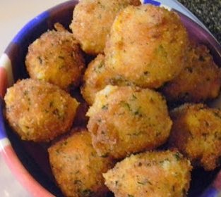 Test oil with one ball. The oil should bubble when potato is in oil and ball should take about 1-2 minutes to brown and cook through. (If takes longer the oil needs to be hotter, if it browned too quickly on the outside and the inside is still cold, the temperature needs to be lower.) Once oil is ready, add potato balls in small batches and fry for 1-2 minutes – it will depend on size. Remove with slotted spoon and place on paper lined plate to allow excess oil to drain off. Repeat until done.