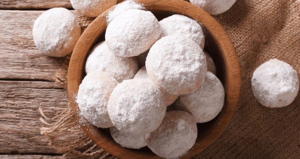 - Remove from cookie sheet, and slightly cool cookies. While still warm, roll cookies in powdered sugar.