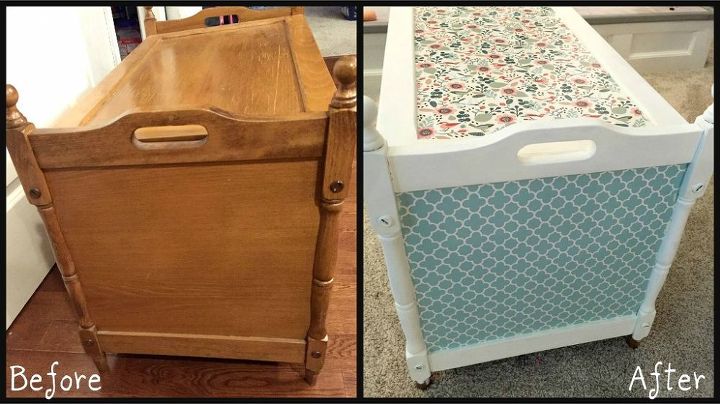Using 2 different kinds of patterns made the toy box interesting and unique. I’m in love with the colors too! It’s brighter and fun to look at, but also still serves its purpose.