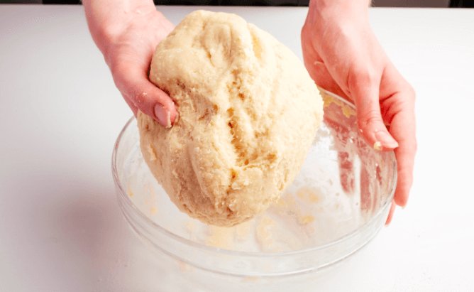 - Press ball of dough into the bottom of the prepared pie dish, spreading it out towards the sides. Using your knuckles or the bottom of a glass, push it evenly across the bottom and up the sides of the dish.