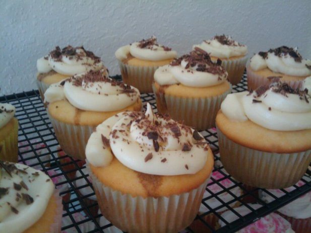 These are delicious tiramisu cupcakes. They are relatively easy to make as they use a boxed cake mix. Read recipe in entirety first – it sounds more complex then it actually is. You can decorate these to be quite elegant & fancy in presentation for Brunches, Bridal showers, or whatever suits your needs. These sell at gourmet bakeries, coffee shops & cafe’s for a pretty penny. Note: I do use mascarpone to make these as that is more traditional, but you could substitute with plain cream cheese if needed. Also, I do use cupcake liners because I think they present better. Lastly, it’s best to prepare mascarpone filling & chill about 4-6 hours in advance or night before. FYI: You can fill the cupcakes by using a icing decorating (piping) bag filled with the mascarpone filling or use an old fashioned ketchup or mustard plastic bottle with nozzle point tip << yes, those ugly yellow & red things 🙂 *** Update: some of you contacted me about skipping the pastry bag step, that’s completely fine, what you need to do is leave room when filling cupcake wrappers by not filling all the way, after cupcakes are baked, you poke the holes & do the liquid coffee over top of poked cakes, then just top with the mascarpone layer (make sure it’s chilled well as it thickens) then just use the cream cheese frosting on top of that & top with chocolate shavings.