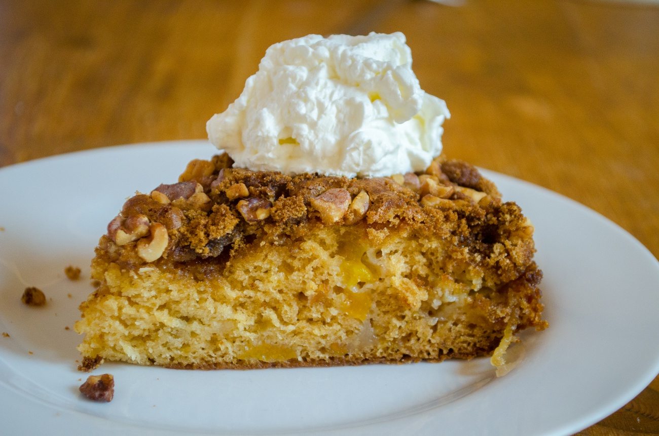 - Pour into prepared pan and crumble brown sugar and nuts over the top. Bake until center is set, 30-40 minutes. “Serve with whipped cream or ice cream.”