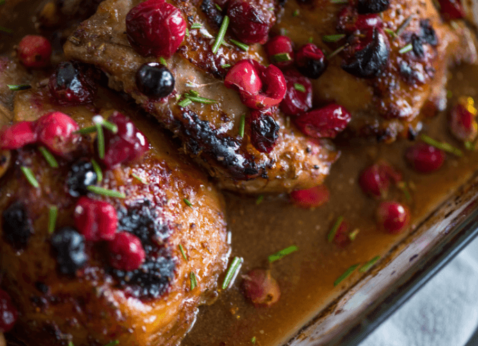 Roasted Cranberry Balsamic Chicken Thighs
