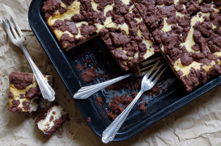 - Make small lumps from the remaining chocolate dough and drop them evenly across the top of the cake. Bake until cake is set and golden yellow, about 50-60 minutes. Allow to cool before serving. Enjoy!