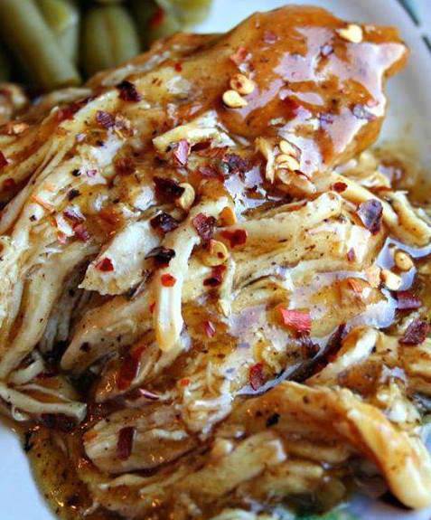 Once cooked, remove the chicken from the slow cooker and pour the remaining sauce in a saucepan.