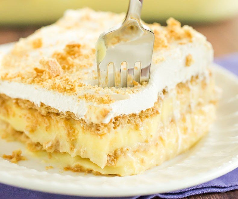 We especially like this version because it’s a simple, basic and traditional recipe that tastes just like the classic icebox cake many of us grew up eating at our grandmother’s houses on the weekends. It’s made from sweet and decadent vanilla pudding, along with several layers of crunchy graham crackers and some mouthwatering whipped cream on top. Plus, you can store it in the fridge for up to three days, meaning you can keep some on hand for when you need a cool and delicious treat.