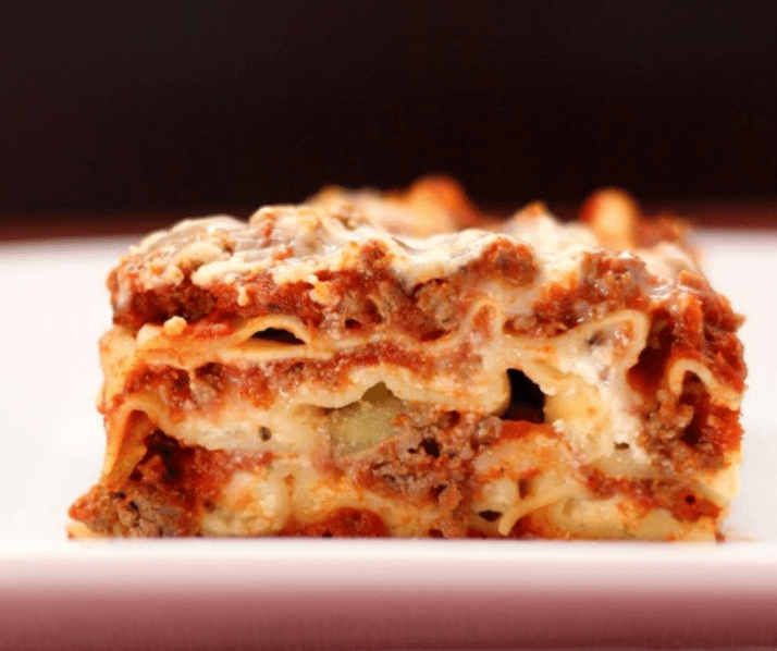 To assemble, spread 1 1/2 cups of meat sauce in the bottom of a 9×13 inch baking dish. Arrange 6 noodles lengthwise over meat sauce. Spread with one half of the ricotta cheese mixture. Top with a third of mozzarella cheese slices. Spoon 1 1/2 cups meat sauce over mozzarella, and sprinkle with 1/4 cup Parmesan cheese. Repeat layers, and top with remaining mozzarella and Parmesan cheese. Cover with foil: to prevent sticking, either spray foil with cooking spray, or make sure the foil does not touch the cheese.